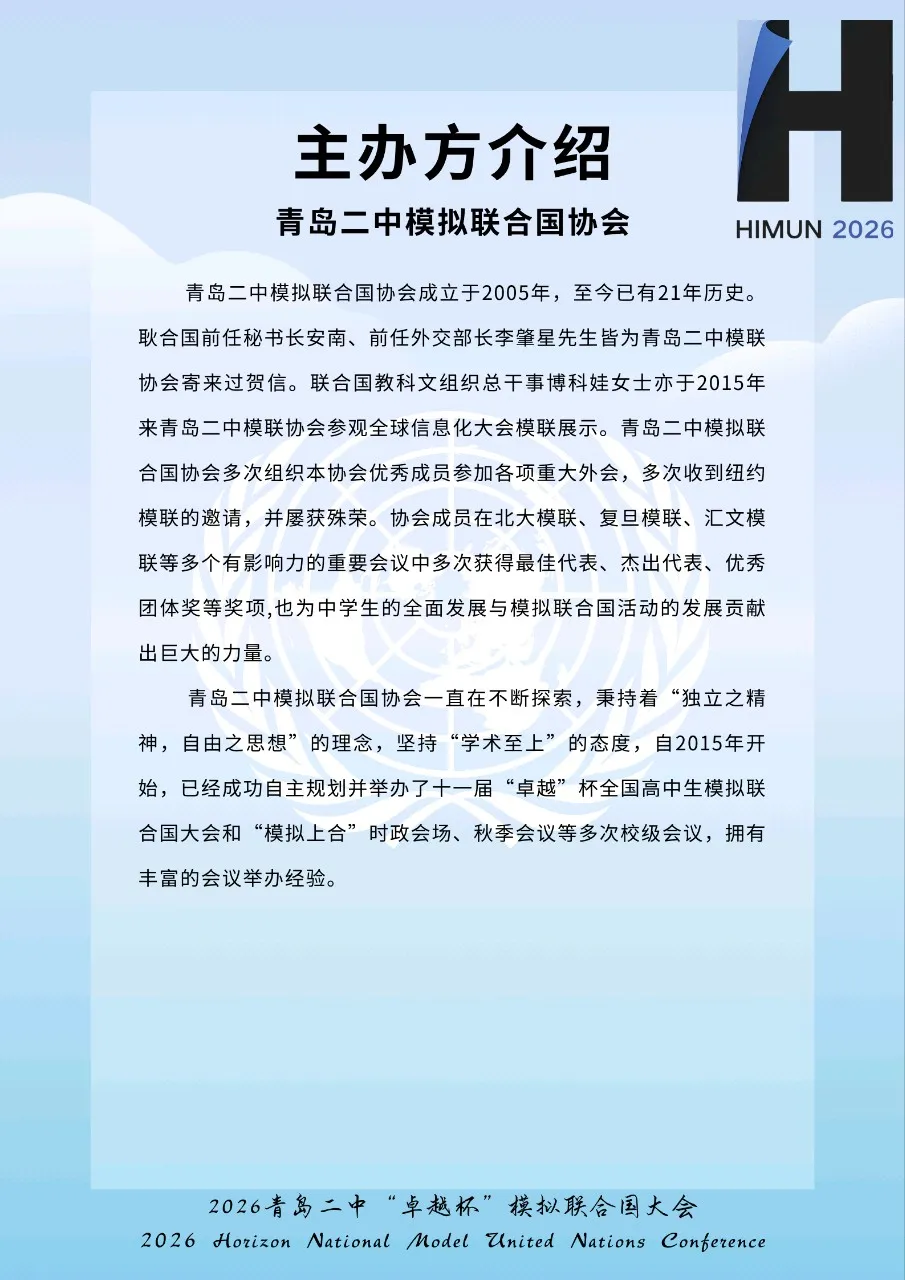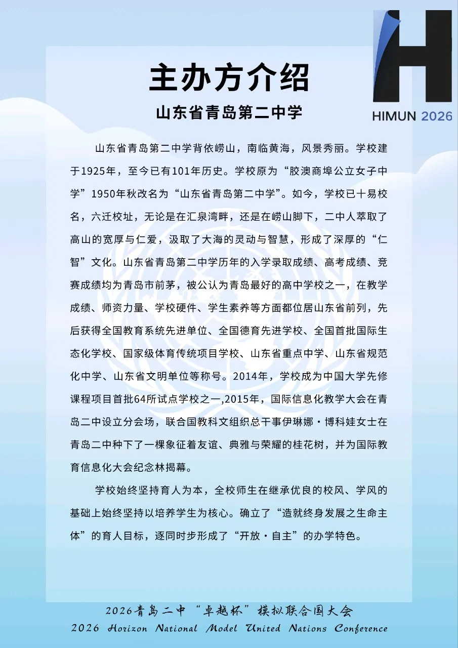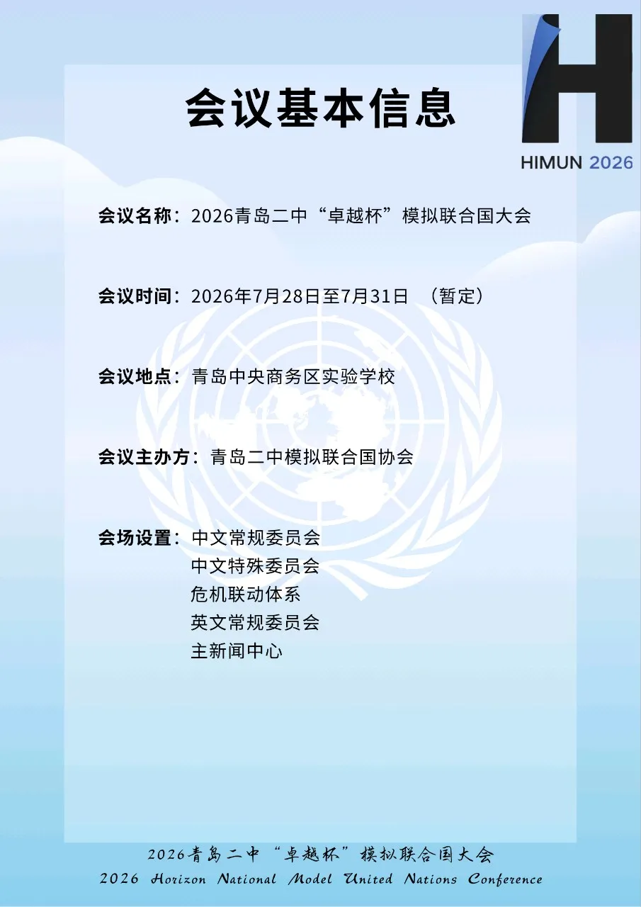2026青岛二中“卓越杯”模拟联合国大会零轮通告