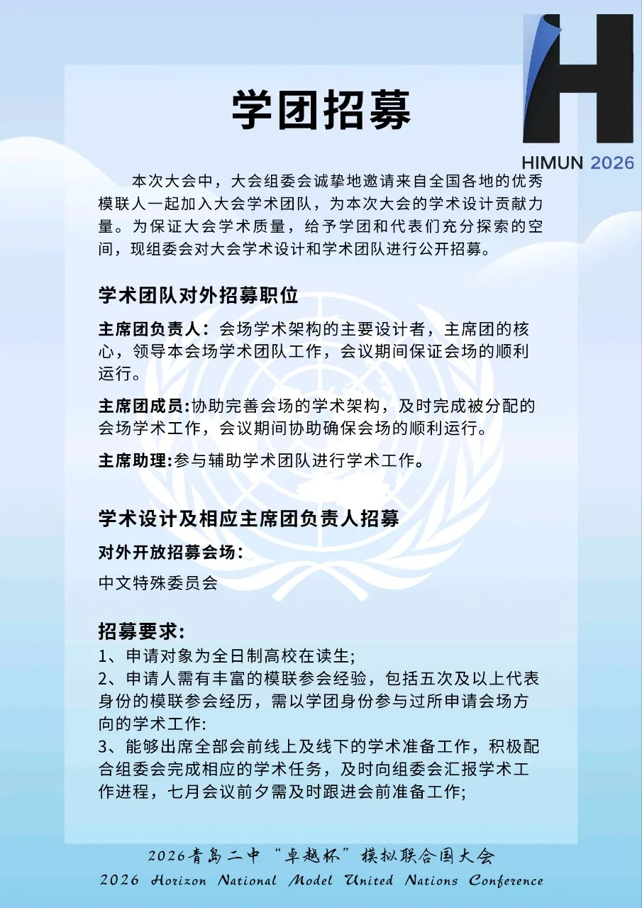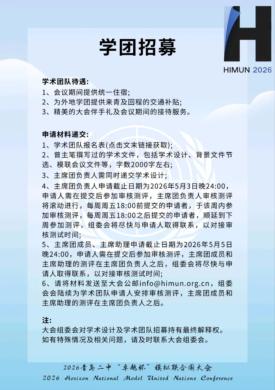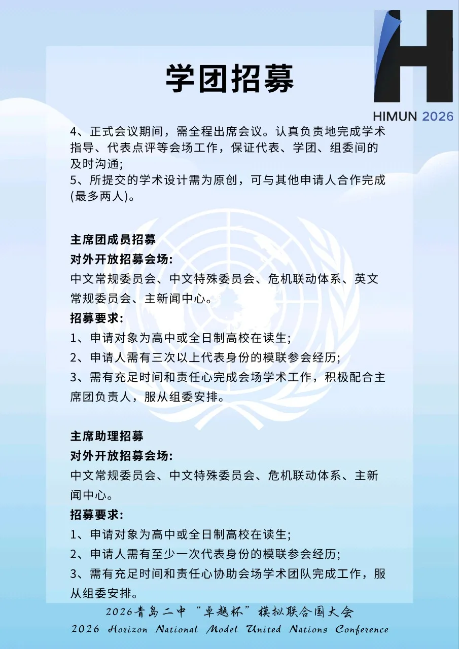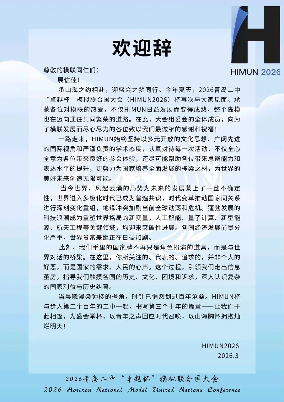 2026青岛二中“卓越杯”模拟联合国大会零轮通告